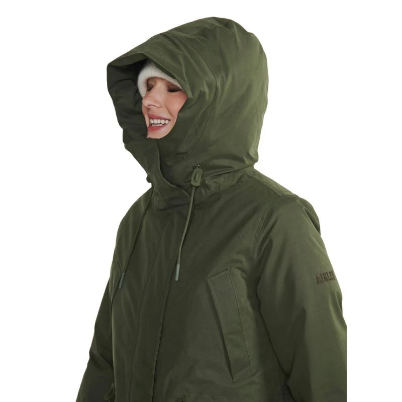 Sa taille est ajustable par cordon, et la fermeture éclair frontale double curseur est protégée par une patte pressionnée pour une sécurité supplémentaire. Arborant la broderie emblématique d’Aigle, cette parka fait d’elle un choix idéal pour la vie en extérieur cet hiver.
